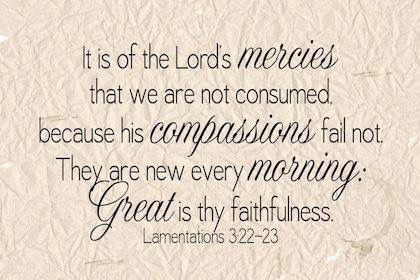 When we struggle, and we all do, it is helpful to look back on the faithfulness of God from previous years. The Scriptures show us this wisdom over and over. In Lamentations Chapter 3 Jeremiah is hurting. He is mad at God and he is letting God know it! After 20 verses of venting you see Jeremiah come back to his senses. He then states, “YET this I call to mind and therefore I have hope. Because of the Lord’s great love we are not consumed, for His compassions never fail. They are new every morning; great is your faithfulness.”