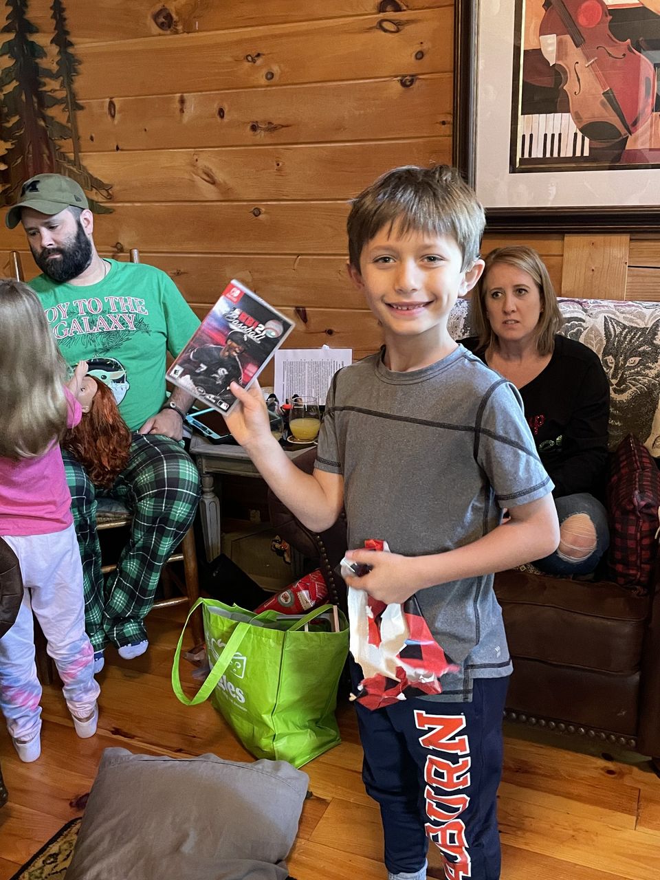 on Christmas Eve I go to my grandma house and open presents play with them they are so cool. we go to are dads house and go to sleep and wake up and Santa came to are house we open them they are so cool. we play with the presents we go to are moms house and Santa came to are moms house we open them we play with them they are so cool. we go to sleep and then wake up go to are nana and pops log cabin but they live in Florida but they rent a log cabin we open presents we play with them they are so cool. the end